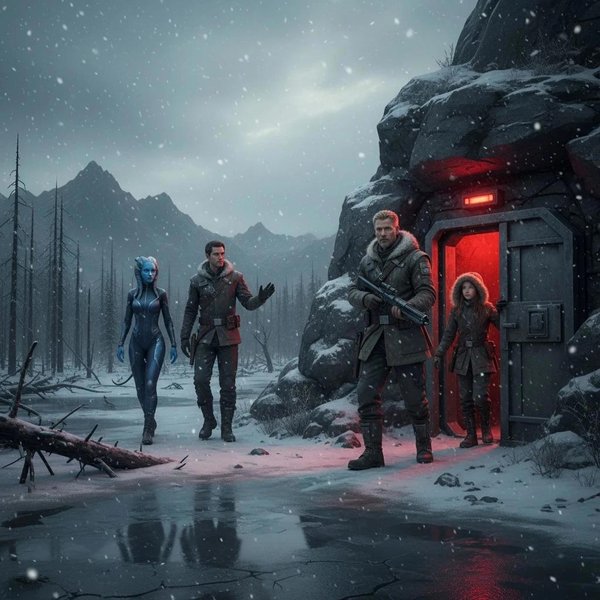 Мертвая планета висела в космической пустоте словно обугленный череп титана, лишенный даже призрачной красоты древних руин. Ее поверхность, некогда украшенная океанами и континентами, теперь представляла собой сплошную мозаику из застывшего стекла и расплавленного камня. Гигантские кратеры зияли в коре как незаживающие раны, а там, где миллионы лет назад плескались волны и шумели леса, простирались только мертвые равнины из спекшегося песка. Алекс стоял у иллюминатора своего корабля, и что-то болезненно сжималось в груди при виде этого космического кладбища. Его глаза, обычно холодные и аналитичные, сейчас отражали глубокую печаль. В них читалась боль человека, который слишком много видел, слишком много понимал о цене древних амбиций. — Атмосферы практически не осталось, — тихо доложила Верена, склонившись над консолью сканеров. Ее голубые лекку слегка подрагивали — верный признак концентрации у тви'лечек. — Радиационный фон превышает норму в четыреста семьдесят раз. Следы массированной орбитальной бомбардировки… судя по изотопному составу осадков, возраст разрушений около трех тысяч стандартных лет. Цифры звучали сухо, научно, но за каждой из них скрывалась чудовищная трагедия. Алекс продолжал молча изучать мертвый мир, его взгляд скользил по континентам, превращенным в стеклянные пустыни. Кое-где из коры торчали оплавленные остатки того, что когда-то могло быть городами или промышленными комплексами. — Видишь эти темные пятна на северном континенте? — спросил он, указывая на экран. — Это не кратеры от бомбардировки. Верена увеличила изображение, изучая указанную область. — Ты прав. Структура другая. Более… организованная? — Это следы городов, — мрачно сказал Алекс. — Огромных мегаполисов. Видишь радиальную планировку? Концентрические кольца? А теперь от них остались только тени на расплавленном камне. Он отвернулся от иллюминатора и прошел к центральной консоли. Движения его были резкими, нервными — Верена за годы совместных экспедиций научилась читать эти признаки. Алекс злился, и злость эта была направлена не на конкретных людей, а на саму историю. — Еще один мир, который был погублен, — пробормотал он, активируя дополнительные сканеры. — Еще одна планета, превращенная в памятник глупости. Верена удивленно взглянула на него. За все время их знакомства она привыкла к его практичности, к способности анализировать древние катастрофы как простые исторические факты, извлекая из них полезную информацию. Но сейчас в его словах слышалось что-то личное, болезненное. — Алекс? — осторожно позвала она. — Что-то не так? Он повернулся к ней, и тви'лечка увидела в его глазах странную смесь гнева и скорби. Эмоции, которые он обычно тщательно скрывал за маской ученого-прагматика. — Знаешь, что меня больше всего бесит в войнах? Что нынешних, что настоящих. Вспомни Валорин. — сказал он, снова указывая на мертвую планету за иллюминатором. — Не жестокость. Не масштабы разрушений. Даже не количество погибших. А расточительность. Чудовищная, непростительная расточительность. Он встал и подошел ближе к иллюминатору, положив ладонь на холодное металлическое стекло. Его отражение смешивалось с видом мертвого мира, создавая жуткий двойной образ. — Космос — это адская бездна, Верена. Миллиарды световых лет абсолютной пустоты, радиац