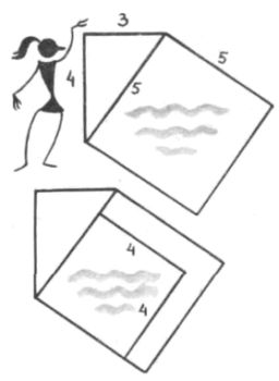 У меня появился друг — младший кок. Его зовут Пи. Утром мы с ним поднялись на палубу и увидели маленький треугольный островок. У него три берега: один длиною в три метра, другой — в четыре, третий — в пять. Капитан сказал, что это особенный треугольник. Он — прямоугольный, потому что один из трёх его углов прямой. — А другие кривые? — засмеялся я. — Кит знает что ты мелешь! — возмутился капитан. — Углы бывают прямые, острые и тупые. (При слове «тупые» он выразительно посмотрел на меня.) Острый угол всегда меньше прямого, а тупой — больше. Углы принято измерять в градусах. Я вспомнил, что температуру тоже измеряют в градусах, — этак легко их спутать. Но капитан сказал, что никакой путаницы быть не может. Одно дело градусы температуры, другое — градусы угловые. Слово «градус» в переводе с латинского означает «ступень» или «шаг». Когда у больного повышается температура, ртуть в градуснике поднимается вверх по шкале, как по ступенькам лестницы. А вот стрелки часов — те шагают по угловым градусам. Например, секундная стрелка за один полный оборот, то есть за 60 секунд, отмеряет угол в 360 градусов. Значит, за одну секунду она пробегает 6 градусов (ведь 360:60 = 6). За это же время минутная стрелка отмеряет угол в 60 раз меньший, ведь в минуте 60 секунд. Ну, а часовая стрелка движется ещё медленнее — в 12 раз! Капитан вынул часы. — Ровно 3 часа, — сказал он. — Как видите, минутная и часовая стрелки сейчас взаимно перпендикулярны. Это значит, что угол между ними — 90 градусов. Такой угол и называется прямым. Берега этого острова, образующие прямой угол, называются катетами, а берег, расположенный против прямого угла, — гипотенузой. Тут штурман объявил, что хочет рассказать нам одну правдивую легенду об этом острове. Я сказал, что правдивых легенд не бывает, потому что легенда — это выдумка. Капитан, однако, заметил, что не всегда. — Когда-то на этом острове, — начал штурман, — было всего-навсего три жителя: мама и два её сына. Маму звали Гипотенузой, а обоих сыновей Катетами. Но чтобы не было путаницы, старшего называли Катетом большим, младшего — Катетом маленьким. Все трое очень любили плавать. А чтобы дети не заплывали чересчур далеко, мама взяла канат и отгородила им в море квадратный участок возле самого длинного берега, что в пять метров длиной. (Точь-в-точь как огораживают ринг для бокса, только здесь четвёртой стороной был сам берег.) Каждая из четырёх сторон этого участка была равна пяти метрам, и, стало быть, площадь для плавания была вполне подходящая — 25 квадратных метров. (Ведь для того чтобы вычислить площадь квадрата или любого прямоугольника, надо перемножить длины двух его сторон. А пятью пять — двадцать пять.) Однажды мама отправилась путешествовать, а сыновей оставила дома. Те сразу стали ссориться. Нехорошие были Катеты! Каждый говорил, что другой мешает ему плавать стилем брасс. И решили они друг от друга отгородиться разделить плавательный участок на две части. Катет большой немедленно достал новый канат, отметил четыре метра по берегу, столько же на одной стороне прежней канатной ограды и отделил себе лучший участок в 16 квадратных метров (4?4 = 16). А то, что осталось — 9 квадратных метров (25?16 = 9), — отдал брату.