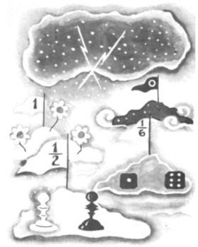 Мы с коком гуляли по палубе и смотрели, как Фрегат пробирается среди бесчисленных островов, стараясь их не задеть. Посреди каждого острова на высоком шесте развевался флаг. А на флагах были написаны разные цифры. Только написаны они были как-то странно: одна цифра под другой, а между ними — чёрточка: