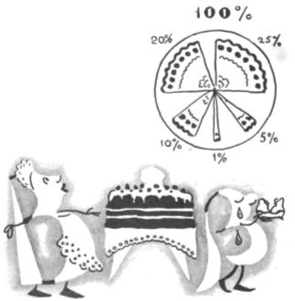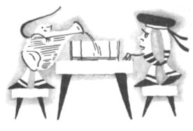 Какие чудные имена бывают у островов! Как вам, например, нравится такое — «Остров Отношений»? Мы с коком чуть со смеху не лопнули, когда услышали, что так называется нынешняя наша стоянка. Добро бы ещё это был Остров Добрых Отношений или, на худой конец, Остров Плохих Отношений… А то просто отношений — и всё тут! Но капитан сказал, что остров этот ни к добрым, ни к плохим отношениям отношения не имеет. Это остров отношений математических. Мы, конечно, потребовали объяснений и, как всегда, своё получили. — Смотрите, — сказал капитан. И написал на листе блокнота вот что: 6:2 = 3 Ну, мы сразу поняли, что это пример на деление. — Верно, — сказал капитан, — но тот же самый пример на деление можно рассматривать как пример на отношение чисел. Разделив шесть на два, мы выясним, как эти числа относятся друг к другу. — Ага! — обрадовался я. — Значит, у чисел всё-таки есть какие-то отношения! — Разумеется, — подтвердил капитан, — но не добрые и плохие, а числовые. И если у нас с тобой отношения могут меняться в зависимости от твоего поведения (сегодня — хорошие, завтра — плохие), то у чисел они никогда не меняются. Отношение шести к двум всегда равно трём, десяти к двум — пяти, тридцати шести к четырём — девяти… — Значит, разные числа относятся друг к другу по-разному? — сообразил Пи. — Не всегда, — сказал капитан. — В том-то и дело, что есть много пар разных чисел, которые относятся друг к другу совершенно одинаково. Отношение шести к двум равно трём. Но ведь трём равно и отношение двенадцати к четырём, восемнадцати к шести, ста двадцати к сорока. Таких пар можно подобрать сколько угодно. Соединим два таких отношения знаком равенства и получим пропорцию: 6:2 = 12:4 Ведь пропорция как раз и есть равенство двух отношений, а числа, образующие пропорцию, называются соответственно пропорциональными. Капитан хотел сказать ещё что-то, но я спросил: что значит «соответственно»? — А то, — объяснил капитан, — что делимые двух отношений пропорциональны их делителям. 6 и 12 пропорциональны 2 и 4. Ничего не скажешь, всё понятно, но, по совести, скучновато. Во всяком случае, после рассказа капитана ничего интересного от острова Отношений мы не ждали. И напрасно. Не успели мы сойти на берег, как тут же попали в кино и с удовольствием посмотрели весёлый приключенческий фильм «Великолепная Восьмёрка». Правда, какое отношение к числовым отношениям имеет кино, мы поначалу не уловили, но оказалось, что самое непосредственное. Кинолента состоит из крохотных кадров, а на экране те же кадры мы видим увеличенными во много-много раз. Но самое главное здесь в том, что числовое отношение всех размеров изображения остаётся при этом точно таким же, как и на плёнке. На плёнке изображён дом. Высота его, допустим, 8 миллиметров, ширина 4. На экране же высота этого дома стала 80 сантиметров, а ширина — 40. Дом вырос в 100 раз. Но отношение его высоты к ширине ничуть от этого не изменилось. Все размеры его соответственно пропорциональны размерам на плёнке. Стало быть, на экране мы видим точное подобие того, что есть на киноленте. Вот почему изображения, все размеры которых соответственно пропорциональны, называются подобными. Мы, разумеется, тут же предположили, что раз существуют изображения подобные, значит, должны быть какие-то бесподобные. — Выдумщики! — засмеялся капитан. Он сказал, что бесподобных изоб