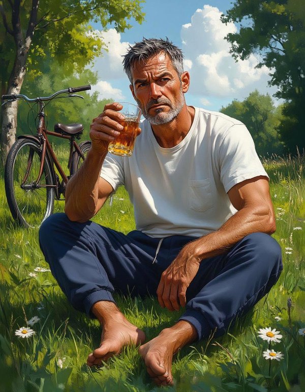 Мастерская Хана осталась позади, как и его пессимистичные прогнозы. Но мне почему-то запомнились не его слова и суровые взгляды, а дети, серьёзные и сдержанные, но в то же время такие живые и яркие. Я трясся на трёхколесном мото-мутанте под управлением дяди Толи. Допрос в опорнике, драка, знакомство с кикиморой Тамарой, суровый взгляд рыжего механика, его странные, не по-детски серьёзные сыновья — всё это были новые фрагменты мозаики, которые пока никак не хотели складываться в единую картину. Я чувствовал себя водолазом, опустившимся на дно мутного озера. Я видел какие-то очертания, какие-то тени, но не мог понять, что это — затонувший корабль или просто скопление мусора? — В сельмаг заскочим, — сказал я, перекрикивая рёв толиного двигателя. — Проставиться тебе должен за экскурсию и по-соседски. Нет возражений? Он понимающе хмыкнул и, лихо заложив вираж, свернул к приземистому зданию с облупившейся вывеской «Продукты». Сельмаг был машиной времени. Стоило переступить его порог, как ты оказывался где-то в середине девяностых. Пахло всем сразу: дешёвой карамелью, пылью, хозяйственным мылом, и копчёной рыбой. На полках соседствовали макароны в серых пачках, консервы с выцветшими этикетками, алюминиевые тазики, резиновые сапоги и единственная кукла с пустыми, вытаращенными глазами. За прилавком сидела продавщица, необъятная, как дирижабль, и вязала, не поднимая глаз от спиц. Как и в первое моё посещение, я отметил некоторое сходство её образа с кинематографической мисс Марпл. Она была воплощением добродушия с нотками хитрецы, спокойствия и была не только человеком, но и частью этого интерьера, таким же вечным и неизменным экспонатом. Дядя Толя сразу прилип к витрине с алкоголем. Его взгляд ласкал бутылки с водкой, как будто это были произведения искусства. Я же прошёл дальше. На самой верхней, самой пыльной полке стояло то, что мне надо. Бутылка кизлярского коньяка «Дагестан» двенадцатилетней выдержки. Судя по толщине слоя пыли, она стояла здесь с самого своего завоза, ожидая своего ценителя или полного дурака, готового переплатить за сомнительное удовольствие. Я был вторым, но с определённой целью. — Вот этот коньяк, — сказал я, ткнув пальцем. Продавщица с трудом оторвалась от вязания, с доброжелательным удивлением посмотрела на меня, на бутылку, снова на меня. Цена коньяка составляла 2 999 рублей и наверняка была безбожно завышена магазином-монополистом. Учитывая, что зарплату мне обещала баба Маша в районе тридцати тысяч, я мог бы себе позволить от такого коньяка только фотографию и то на Новый год. Во взгляде молчаливой мисс Марпл отчётливо читалось сомнение в моём психическом здоровье. Она принесла шаткую стремянку, с кряхтением взобралась на неё и сняла мой артефакт. Кроме коньяка я взял две средние кисти, банку синей краски — ядовитого, пронзительного цвета, который будет смотреться на моём сером заборе, как павлин в курятнике. А потом мой взгляд упал на косы. Они стояли в углу, прислоненные к стене. Новые, с гладкими, отполированными ручками. Одна у меня в сарае уже была, старая, ржавая. Но старый инструмент несёт в себе старые истории, старую усталость. А я хотел начать что-то новое: — Набор вискарных стаканов и две косы. Похоже, я смог вывести работницу торговли из её флегматически-добродушного равновесия. Теперь продавщица смотрел