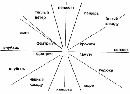Итак, удобно различать нередуцируемые «виды» тотемизма: индивидуальный; социальный, в рамках которого можно выявить множество разновидностей — половой тотемизм, фратриальный, секций, подсекций и клановый (патрилинейный или матрилинейный); культовый, религиозный по сути тотемизм, включающий две разновидности — патрилиней-ную и «зачатия»; наконец, тотемизм сновидения, он может быть социальным или индивидуальным.