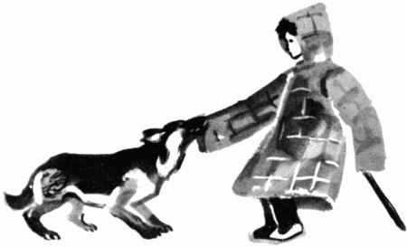 Но бывает и так, что даже злобный пес, когда его положишь охранять вещь, вдруг теряет свою способность лаять или просто издать хоть какой-либо звук. Он ужасно злится на приближающегося к нему человека, не прочь броситься на него и растерзать, но вот выдавить из себя хоть бы рык он не в состоянии. Вы задорите пса командами, он таращит глаза, надувает щеки, судорожно глотает воздух — и молчит. Это трудный случай; собаке придется давать «голос» по команде в различных положениях, и когда она будет легко лаять лежа, вернуться опять к охране и подсказывать ей одновременно с командой «охраняй» команду «голос».