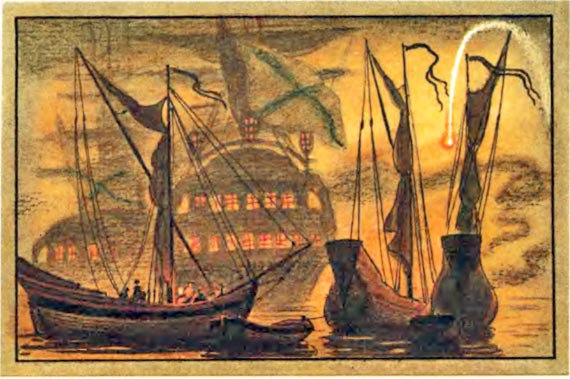 На палубах спят и матросы, а их на большом корабле более полутысячи, иначе не справиться с огромными парусами.