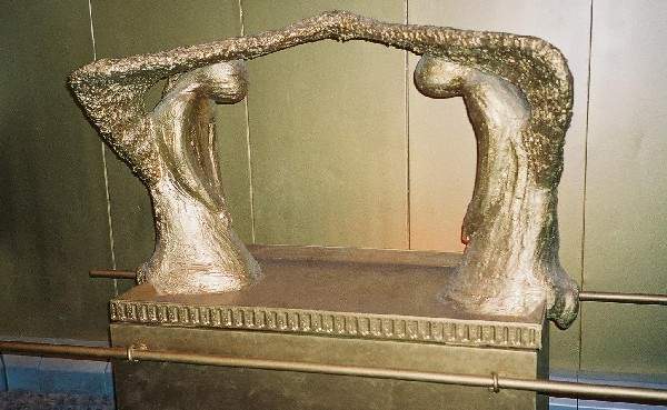 Согласно Библии, израильтянами называются потомки Иакова (Быт.32:28). Именами его сыновей (Быт.35:23–26; 49:2-28) названы двенадцать колен Израиля. В период с 1500 по 1200 гг. до н. э. в странах Западной Азии широко проявлялись монотеистические тенденции. Израильтяне в Египте поклонялись египетским богам (Нав.24:14), а корни монотеизма у них могли возникнуть под влиянием реформ фараона Аменхотепа IV (Эхнатона) (ок. 1419 — ок. 1400 гг. до н. э.), предвестника монотеизма и создателя религии бога Атона.[138] Многие ученые предполагают, что Яхве (Иегова) был богом войны у мадианитян (Исх.2:15 и след.). Кроме того, религиозный культ израильтян впитал в себя элементы египетского культа змея (4 Цар.18:4; ср. Чис.21:8–9). Известно, что левиты играли исключительную роль в жизни израильтян. Хотя при разделе Палестины (Втор.3:12 и след.) Левиево колено не получило земли (двенадцатая часть земли Палестины была отдана Махиру, сыну Манассии и внуку Иосифа), но зато оно было освобождено от материальных забот, ибо собирало десятину на свое содержание (Чис.18:21–32). Имя Левий, или, точнее, Левú (לֵוִי), произошло, быть может, от древнееврейского слова, обозначающего змей. Левиты, по-видимому, в Египте были почитателями бога змея и неохотно расставались со своим культом.[139] Впоследствии в культ Яхве были вплетены доктрины месопотамских[140] и ханаанских культов.Ковчег завета (реконструкция)