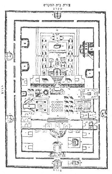 Чертеж будущего — предполагаемого — Третьего храма привел каббалист Моше Хаим Луцато (Рахмаль) в своей книге «Мишкани Элион».[205]