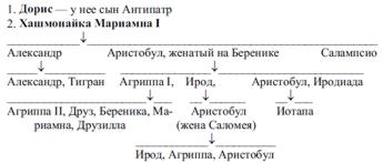 Конец власти Хашмонаев был положен римским полководцем Гнеем Помпеем (Pompejus) Великим, который в 63 году до н. э. захватил Иерусалим, ограничил территорию Иудейского государства Иудеей, Галилеей и Переей и присоединил его к Сирии, наложив на иудеев дань. Он увел в плен множество евреев, в том числе и одного из основных претендентов на иудейский престол — Аристобула II, — назначив первосвященником Гиркана II (Strab.XVI.2:40; Jos.AJ.XIV.3–7; BJ.I.6:4–7:7; Tac.H.V.9). В 54 году до н. э. Красс (Crassus) разграбил Иерусалимский храм (Jos.AJ.XIV.7:1; BJ.I.8:7–8). Во время военных действий Гая Юлия Цезаря (Gaius Julius Caesar) в Египте, Гиркан II и его помощник эдомитянин Антипатр перешли на сторону римлян. В благодарность за это Юлий Цезарь отделил Иудейское государство от Сирии и дал стране некоторую самостоятельность, назначив Гиркана этнархом (47–41 гг. до н. э.), Антипатра — первым наместником Иудеи, а сына Антипатра — Ирода[121] — стратегом Галилеи (Jos.AJ.XIV.8–9; BJ.I.10:3–9). После убийства Цезаря в 44 году до н. э. Антипатр и Ирод перешли на сторону Кассия (Cassius). Когда же в 42 году Кассий в союзе с Брутом (Brutus) потерпел поражение от Антония (Antonius), Антипатр и Ирод сразу же признали нового правителя (Jos.AJ.XIV.10–11). В 40 году до н. э. сын Аристобула II, Антигон (последний из Хашмонаев), выступил против римлян и при поддержке иудеев и парфян захватил Палестину (Jos.XIV.13:10; BJ.I.13:1-11). В том же году (40 г. до н. э.) Антоний назначил царем Палестины Ирода, сторонника Рима, однако Ироду удалось вступить в Иерусалим и занять трон лишь спустя три года (37 г. до н. э.), да и то при помощи римлян. Прежде всего он казнил Антигона и поддерживающих его представителей знати (Jos.AJ.XIV.14:4; 16:3–4; XV.1; BJ.I.14–18).